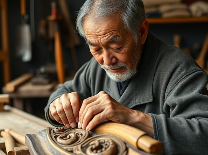 50 年以上にわたり京都で木工に携わる。伝統的な指物技法を現代の家具作りに活かし、多くの弟子を育成。